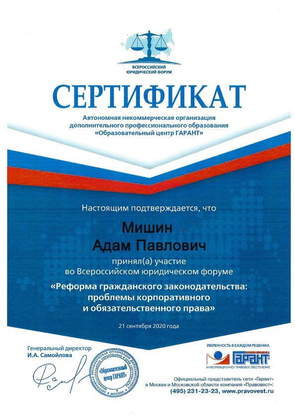 Сертификат «КонсультантПлюс»