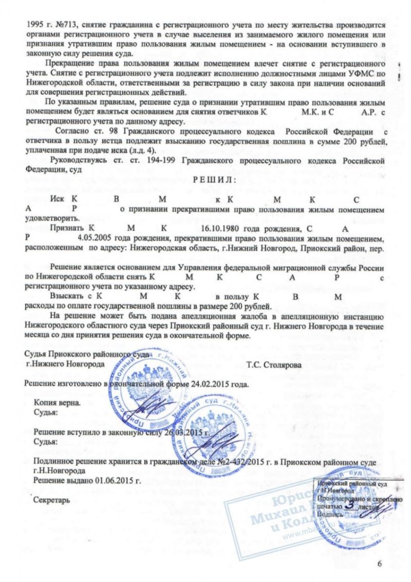 Суд установил, что женщина не имеет законных оснований для проживания на жилплощади отчима и лишил её прописки по данному адресу.